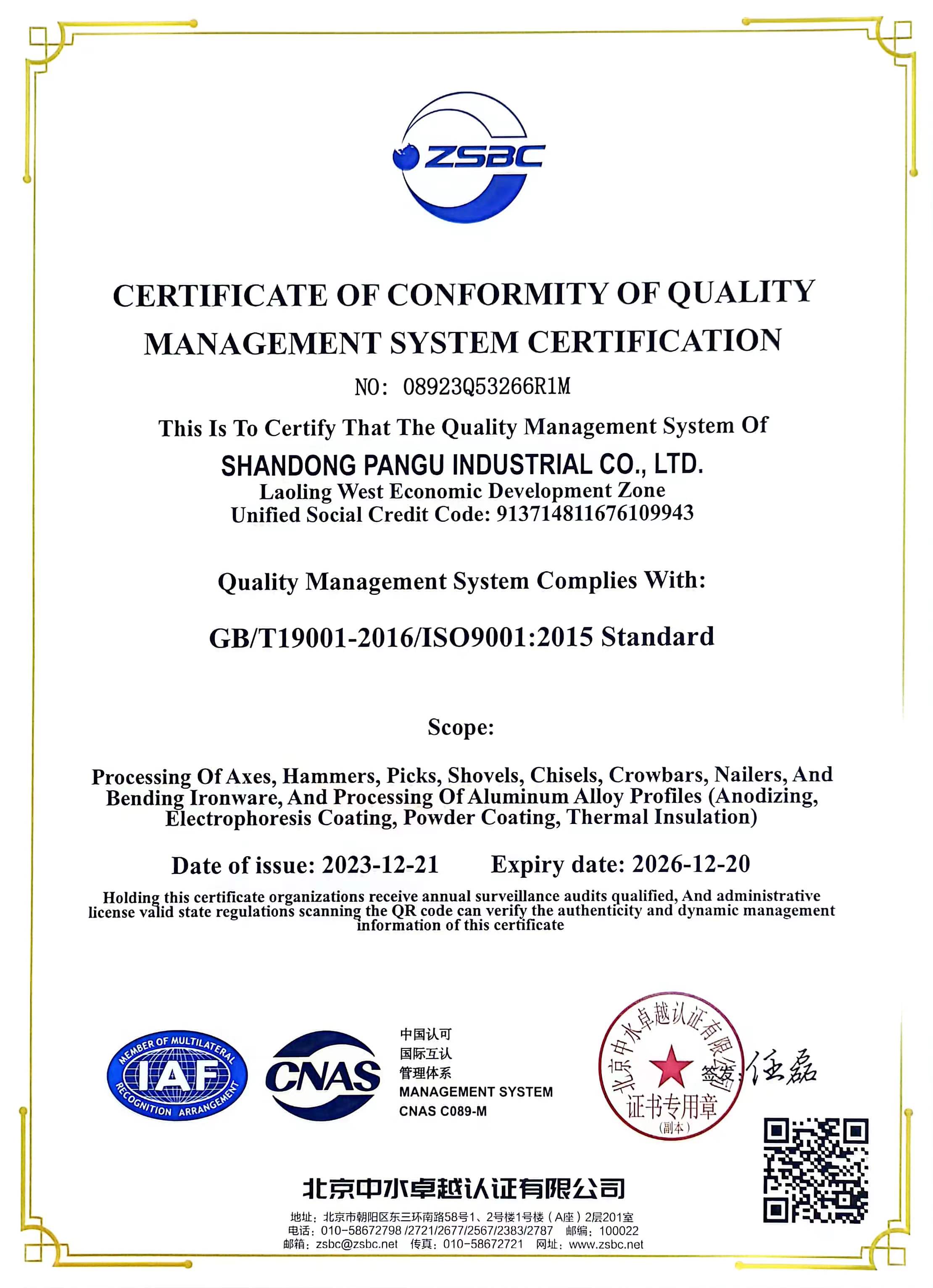 Shandong Pangu Industrial Co.,Ltd. was founded in 1966 and specialize in manufacturing all kinds of axe & hatchet, hammer, splitting mauls, crow bar, wrecking bar, faucet wrench, various agricultural tools and hand tools etc. Our tools has over 40 series and more than 200 types. The annual output is over 20 millions pieces. All of our tools are for export. And they are sold popular in the world.